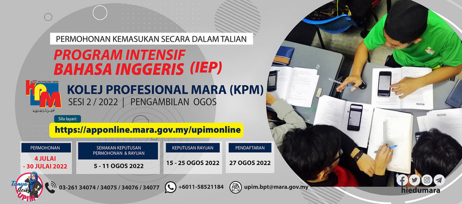 Permohonan dalam talian kemasukan ke program intensif bahasa inggeris iep kolej profesional mara kpm sesi 022022 pengambilan ogos. KP 980101112121 Perhatian. Pegawai Perkhidmatan Pendidikan Gred Jawatan.